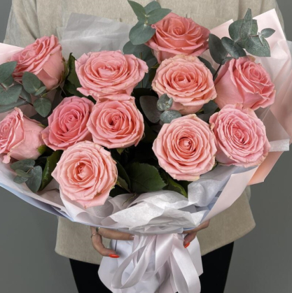 Буукет 11 розовых роз с эвкалиптом | Купить с доставкой в Химках