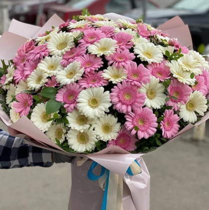 Букет из 101 белой и розовой герберой | Купить в Химках