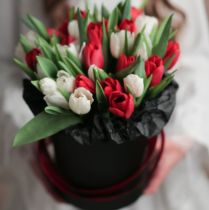 Коробка красных и белых тюльпанов | Купить в Химках