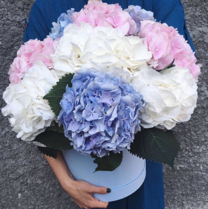 Коробка из разноцветных гортензий с бесплатной доставкой в Химках