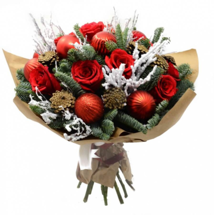 Новогодний букет из красных роз и нобилиса | Купить в Химках