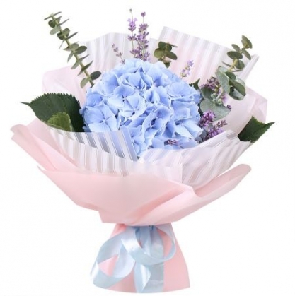 Голубая гортензия с добавлением эвкалипта и лаванды.